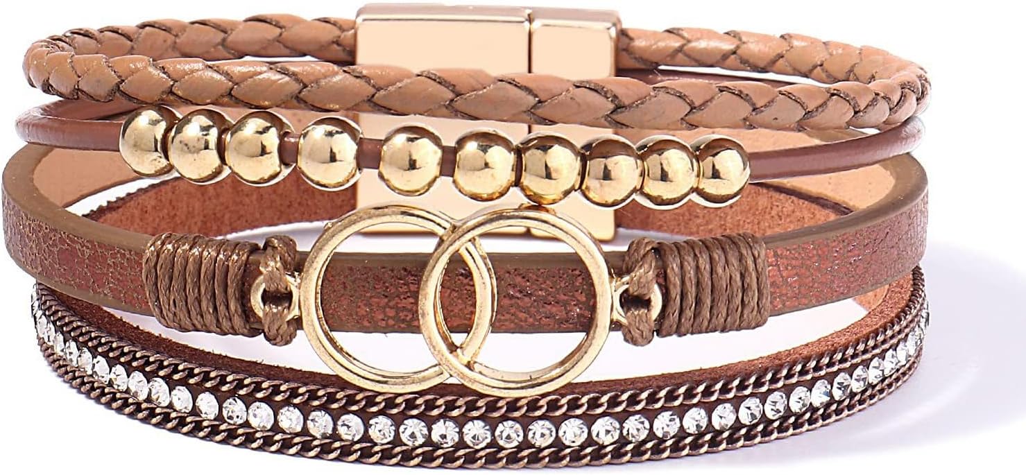 Love Heart Leather Boho Trendy Wrap Stackable Multilayer Bracelets Wide Cuff Bangle Jewelry Gift For Women
