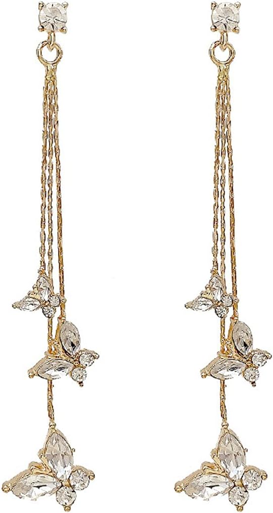 Butterfly Earring for Women Crystal Butterfly Tassel Earrings Long Drop Dangle Earrings Jewelry for Women Sparkle Colorful Zircon Animal Butterflys Pendant Earrings