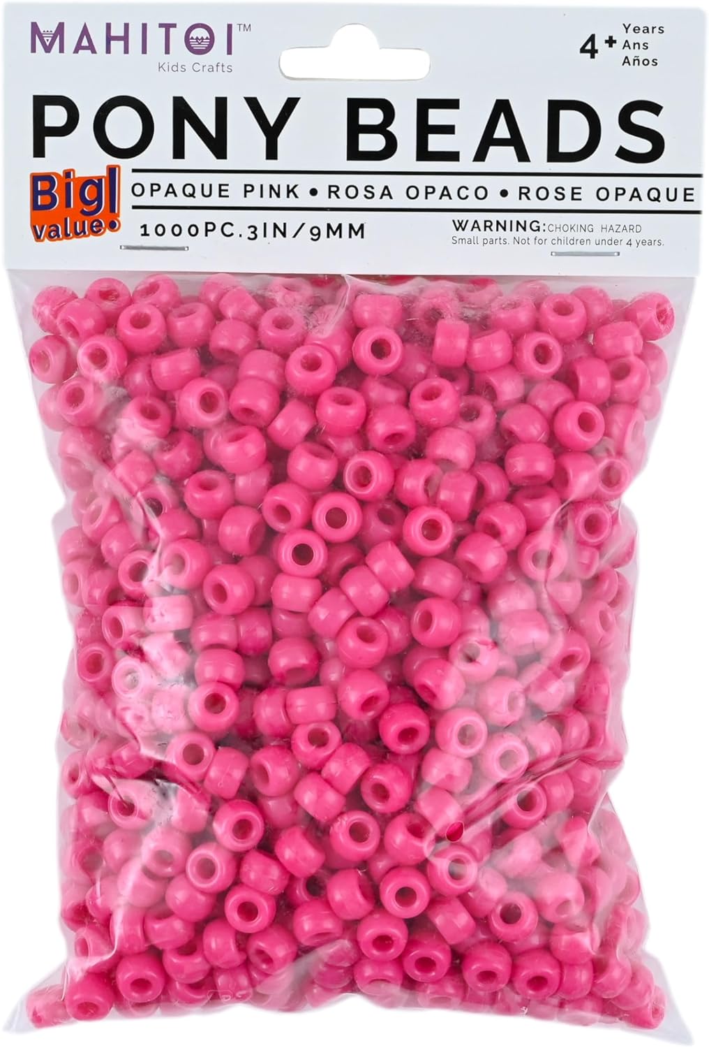 - MAHITOI Pink, 9m Opaque Pony Craft Projects for Ages 4 years old and up Craft, Ornaments, Key Chains, Hair Round Plastic Center Hole, 9mm Diameter, 1,000 Beads Per Ba, 1000 Count (packaging may vary). Small beads; Baby pink beads for Craft making