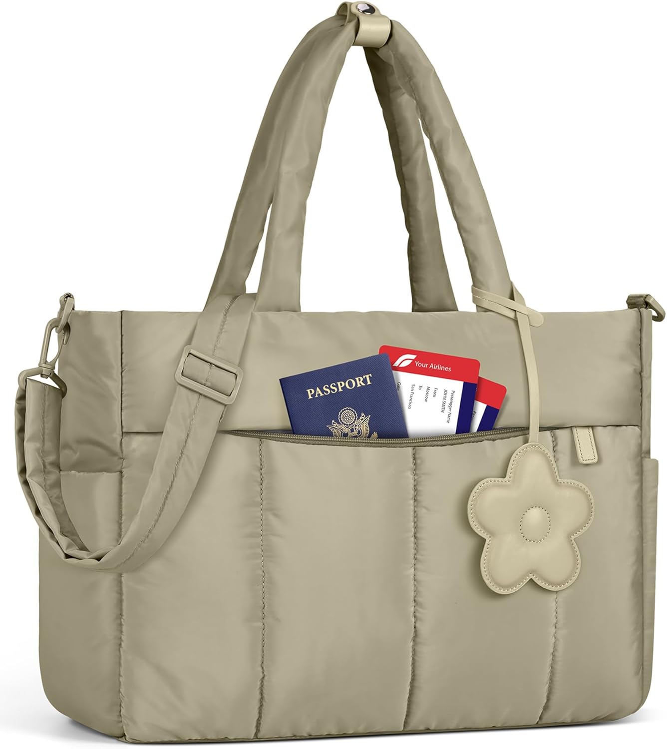 - Elegant Quilted Design & Detachable Strap: This work tote bag features a stylish quilted pattern and a charming flower accessory, seamlessly combining fashion and functionality. It comes with an adjustable and detachable shoulder strap, providing versatile wearing options to effortlessly complement any outfit.