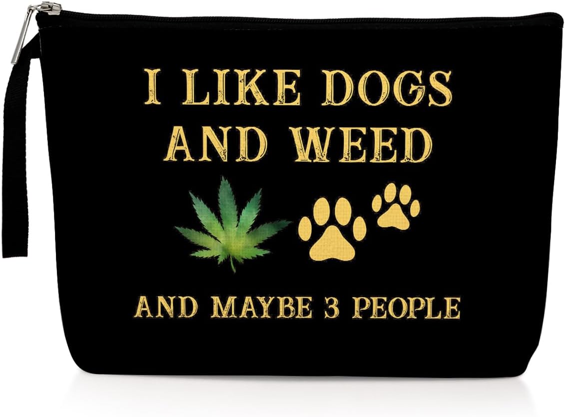 Funny Weed Gift Humor Makeup Bag Dog Lovers Gifts for Women Sister Wife Friends Green Leaf Cosmetic Bags Dog Mom Gifts Zipper Pouch Weed Stuff Travel Toiletry Bag