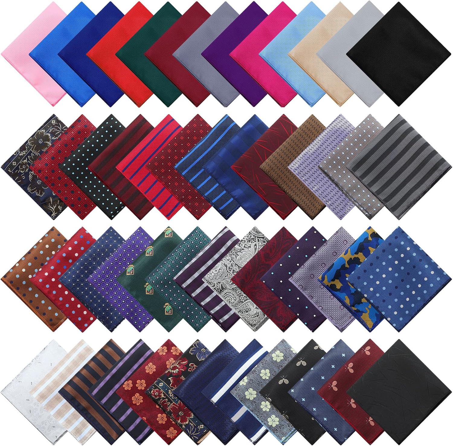 52 Pcs Pocket Squares for Men Soft Silk Handkerchiefs for Suit Accessories Wedding Business Banquet 9.06 x 9.06'', 52 Styles