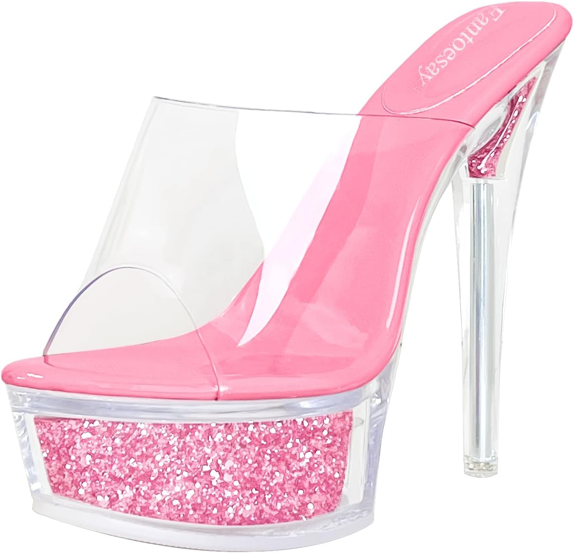Fantoesay Women's Stiletto High Heeled Glitter Platform Sandals-Clear Sparkly 5 Inches+ Heels Sexy Slip on Shoes