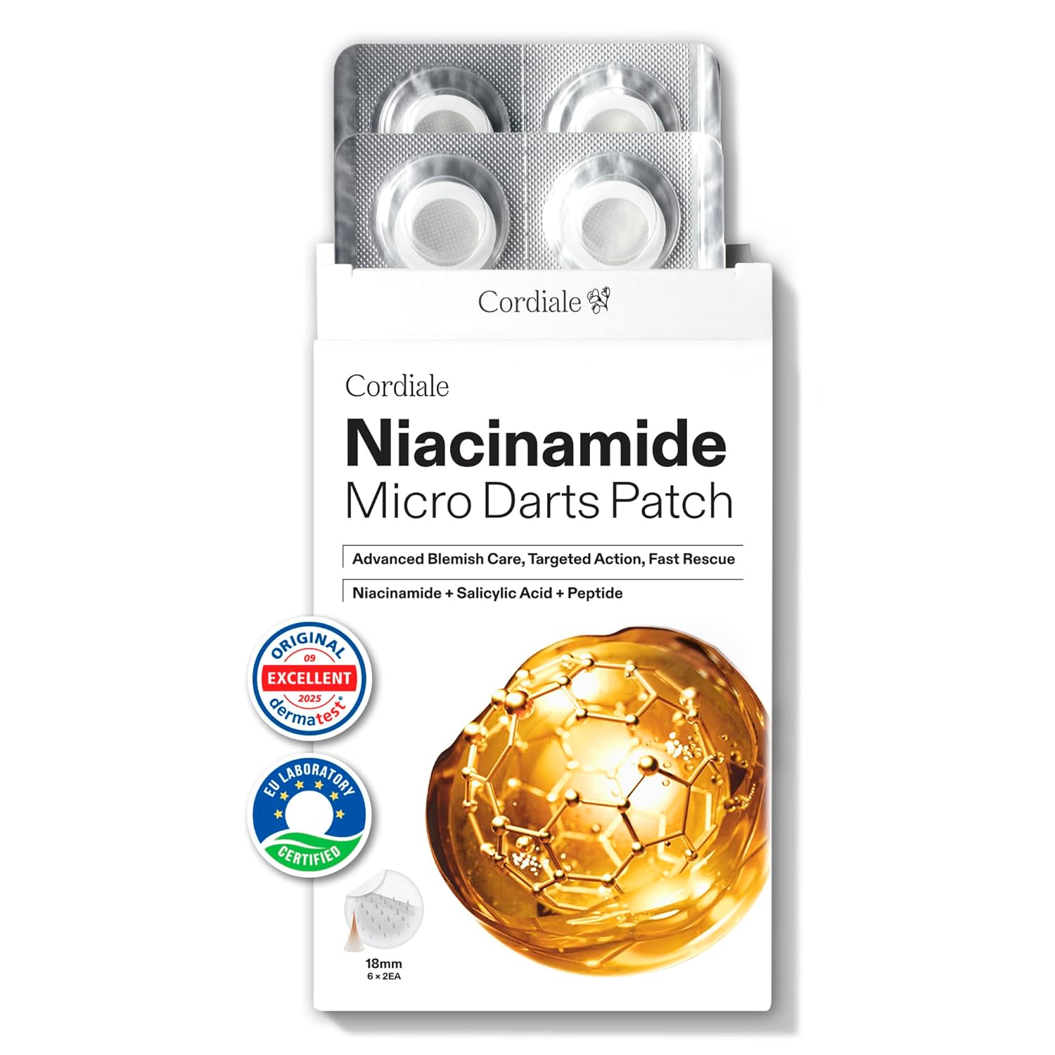 Cordiale Niacinamide Microdart Pimple Patches + Salicylic Acid & Peptide - Micropoint Hydrocolloid for Deep Blemishes & Early Stage zits, Dark Spot Treatment, Korean Skin Care (12 Count)
