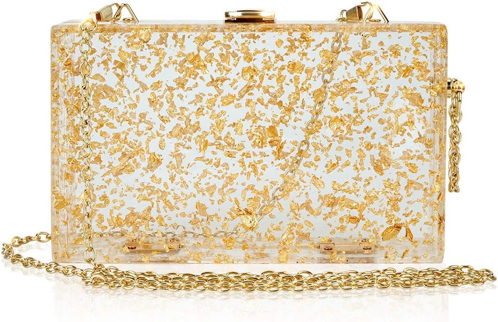 Women Acrylic Evening Clutch bag Transparent Golden Box Purse Handbag for Wedding Cocktail Party Prom, Blue