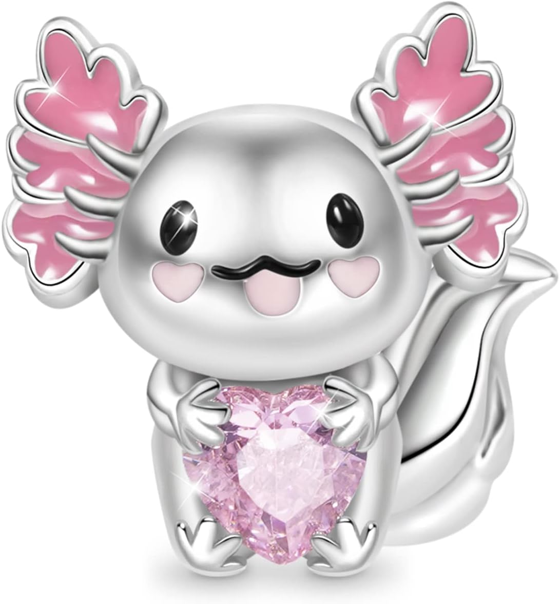 GNOCE Axolotl Embraces Heart Gemstone Charms Bead Sterling Silver Charm For Bracelets/Necklace Jewelry Gift For Women Wife Fit Snake Chain (Axolotl Embraces)