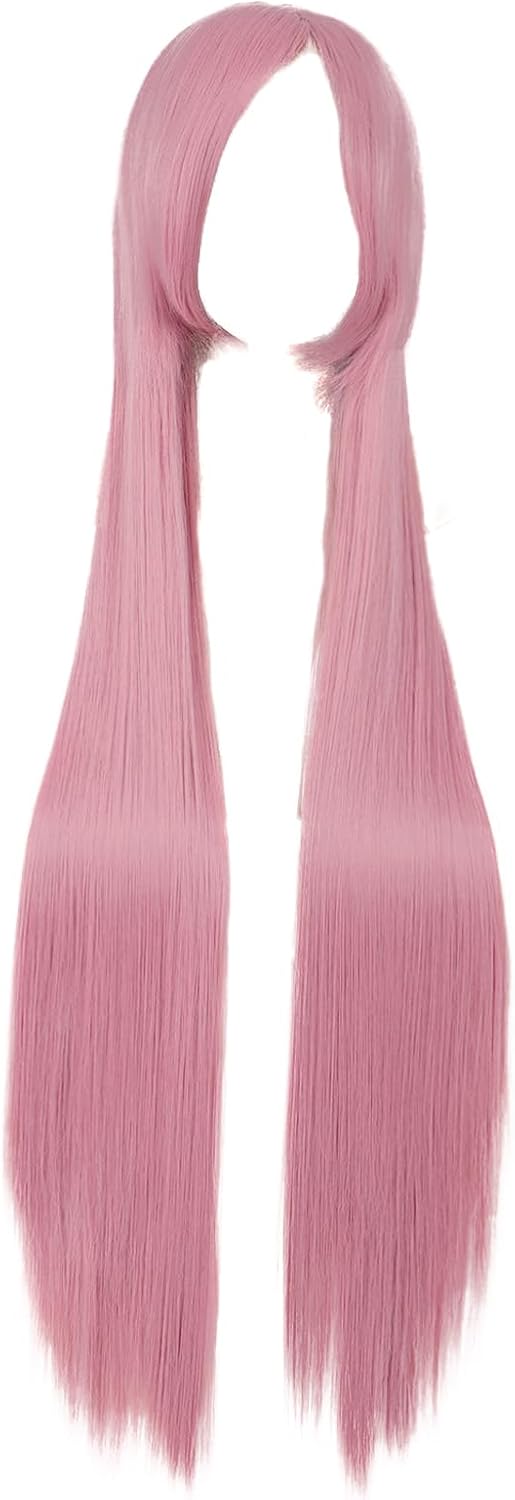 MapofBeauty 39 Inch/100cm Side Bangs Long Lolita Cosplay Party Pink Straight Wig 100cm