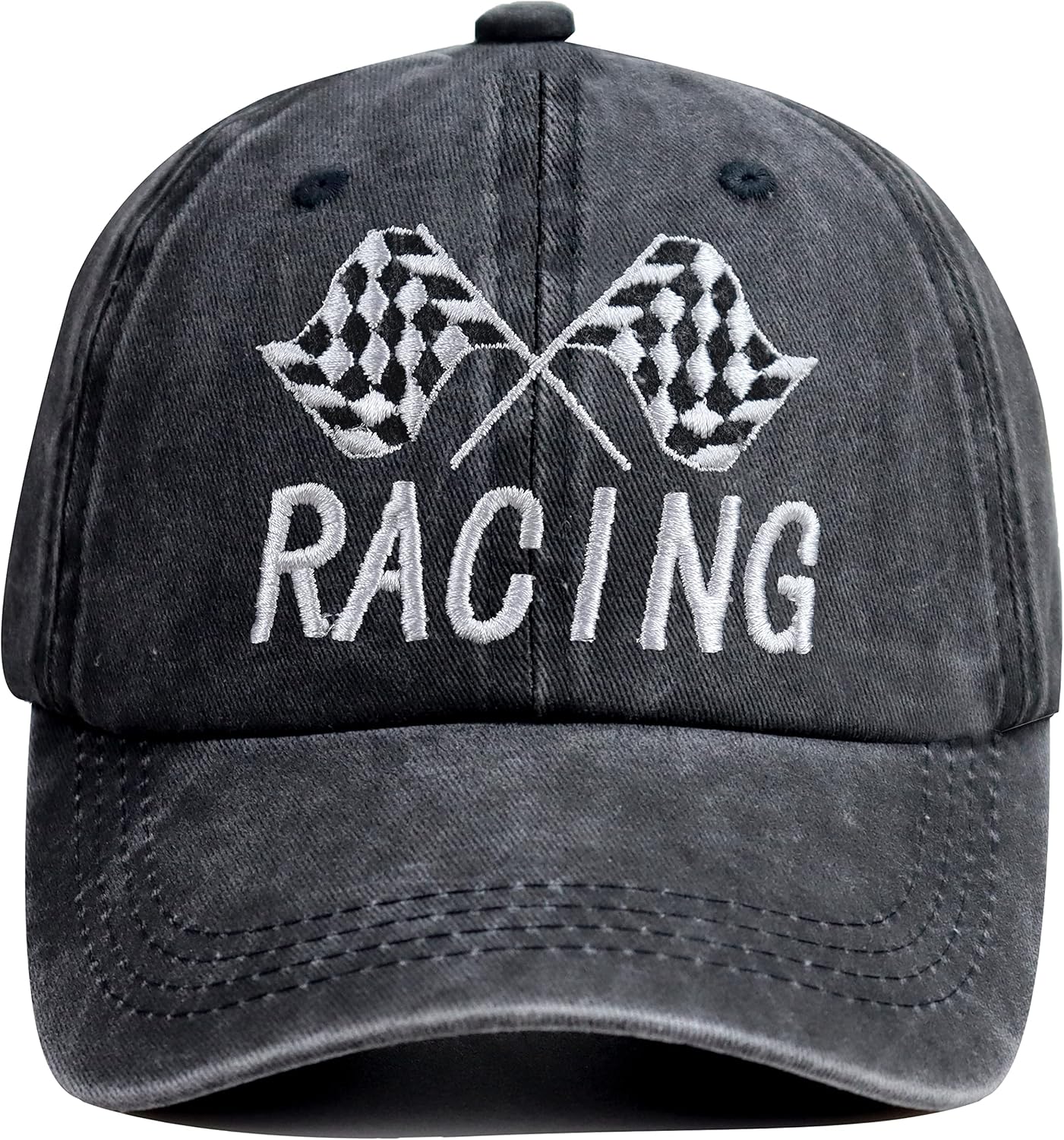 HHNLB Black and White Checkered Flag Race Car Hat, Adjustable Washed Cotton Embroidered Baseball Cap for Men Women