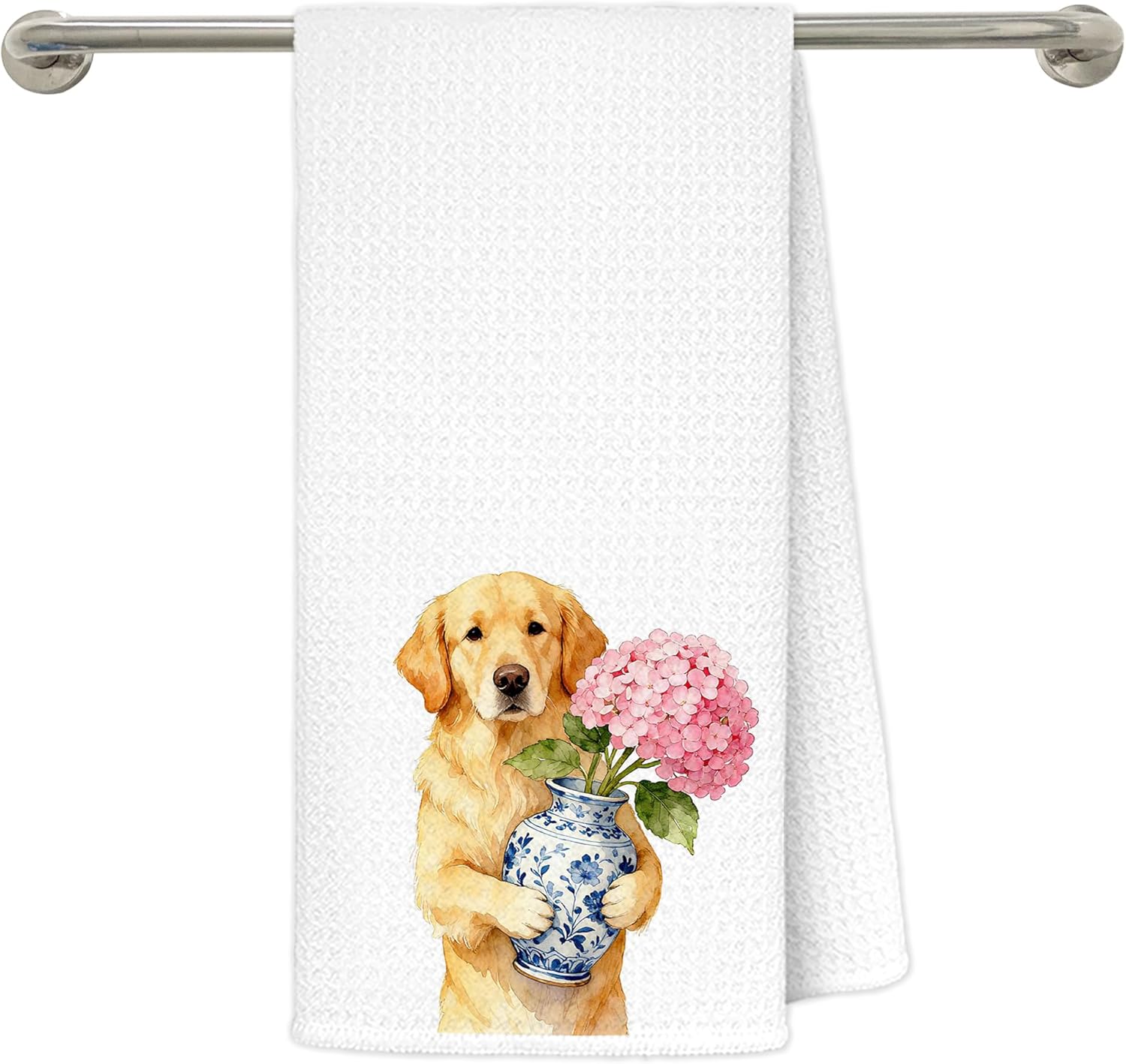 Chinoiserie Pink Hydrangea Golden Retriever Kitchen Towels 16x24 in, Golden Retriever Lover Gifts, Grandmillennial Pink Floral Dog Decorative Hand Tea Dish Towels for Bathroom Kitchen