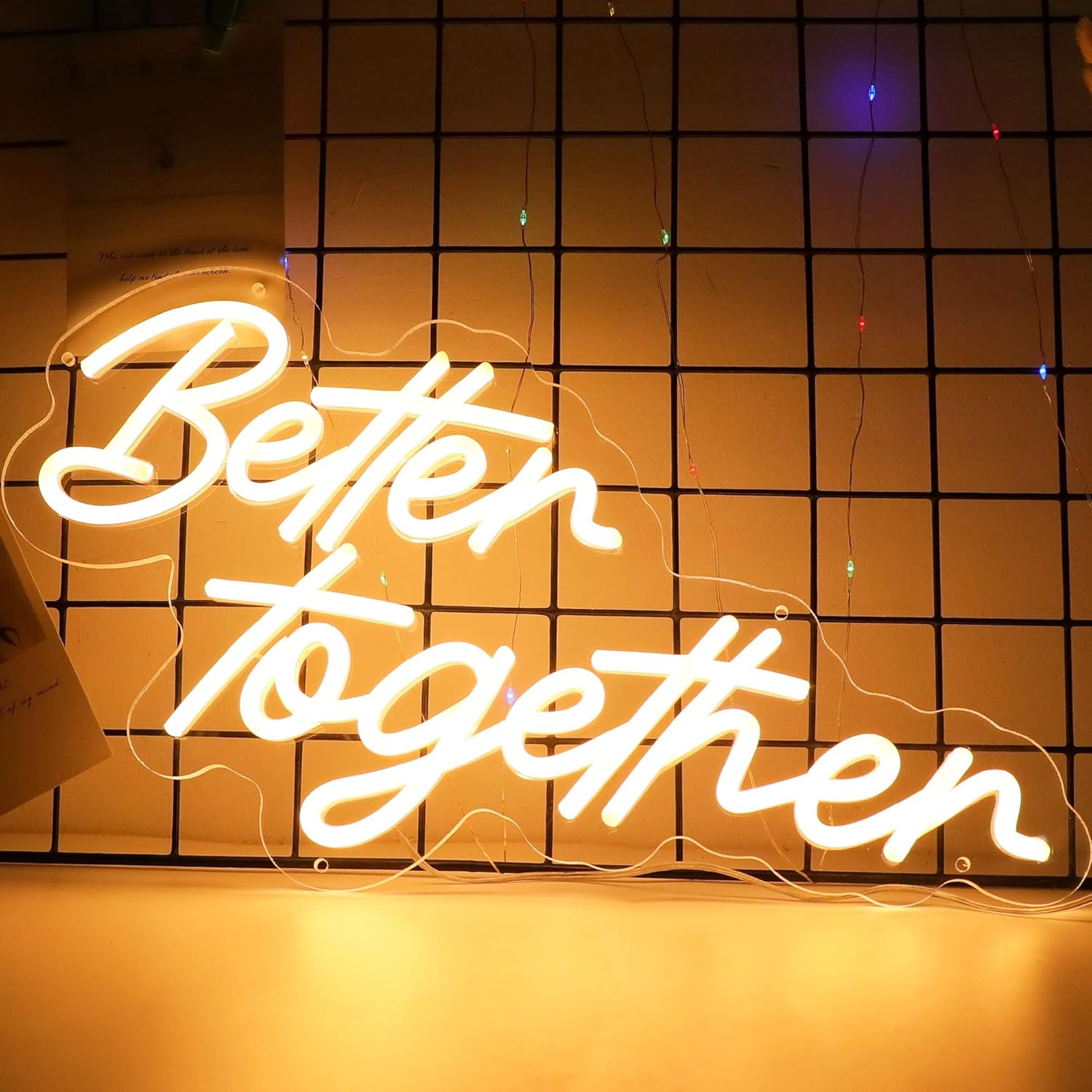- [Better Together Neon Sign]: Warm White light sign is the perfect decoration to liven up any room with the radiance of the vibe lights, unlike other styles, better together art letter which will make the colors in the room less monotonous