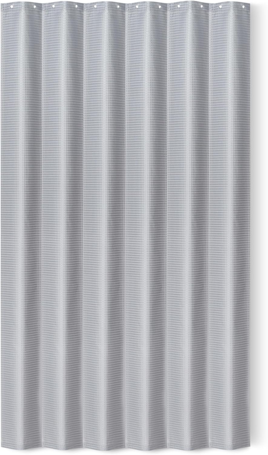 - Standard-size modern shower curtain with sophisticated waffle texture; dark grey