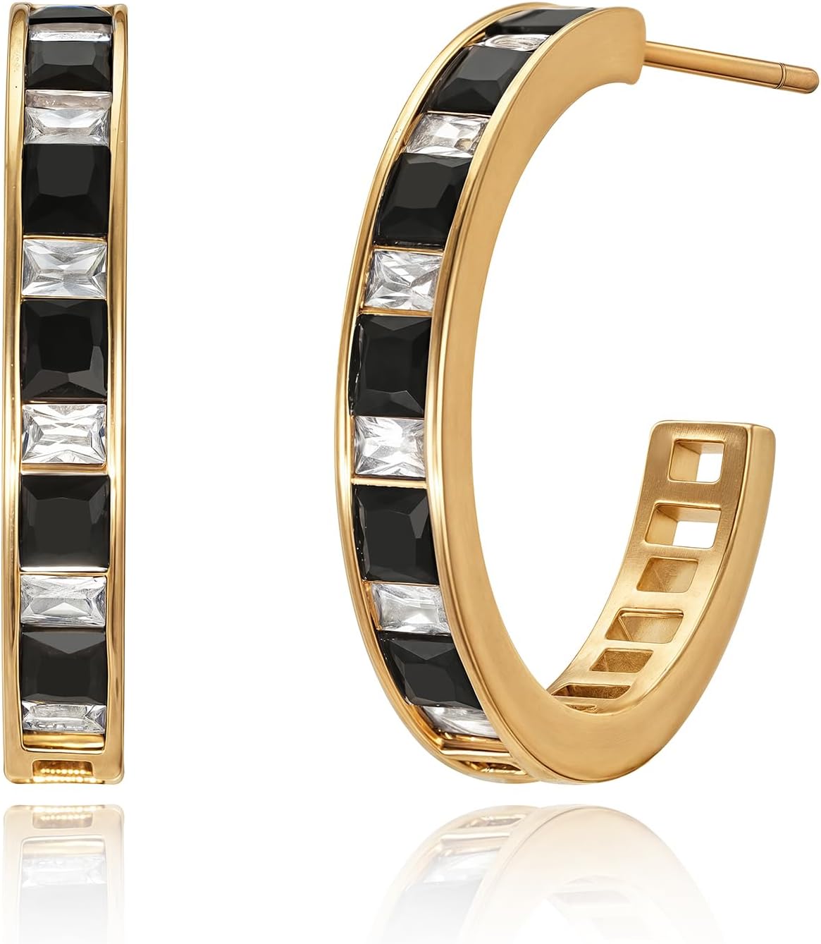 MYEARS Gold Open Hoop Earrings for Women 14K Gold Plated Black/Blue Big Stud Earrings Statement Jewelry for Women Trendy Gifts