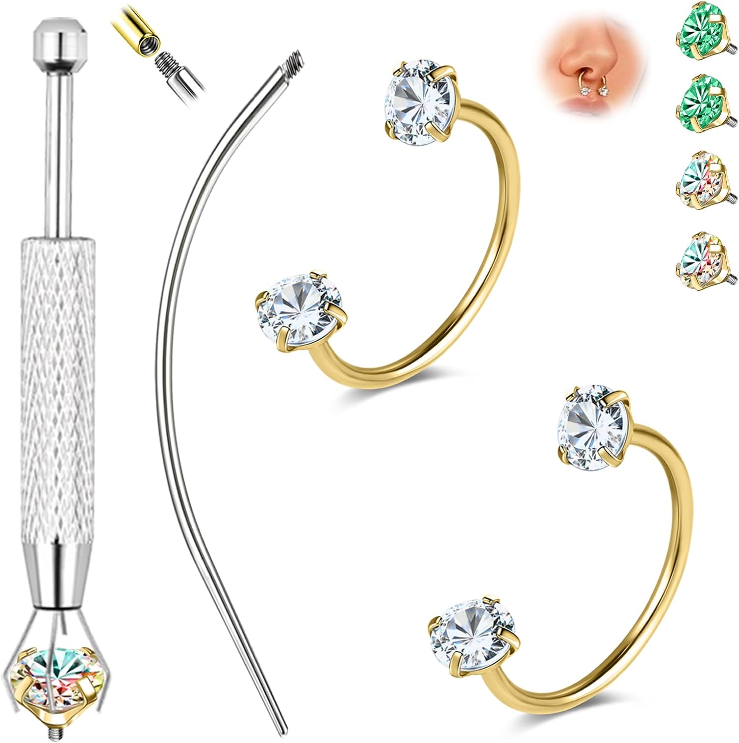 ZS G23 Titanium Horseshoe Nose Ring 20G 8mm - Hypoallergenic Piercing Body Jewelry for Nose, Lip, Ear, Helix, Conch, Cartilage - CZ Noes Studs with Insertion Tapper