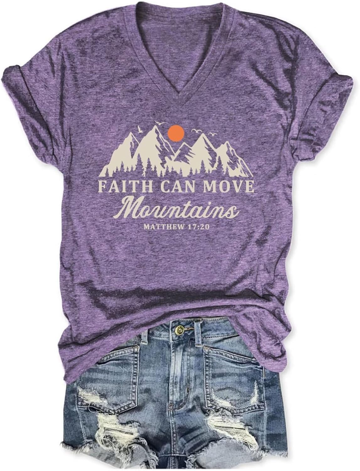 Faith Can Move Mountains Tshirt Women Christian V Neck Shirts Inspirational Tee Religious Saying Tops