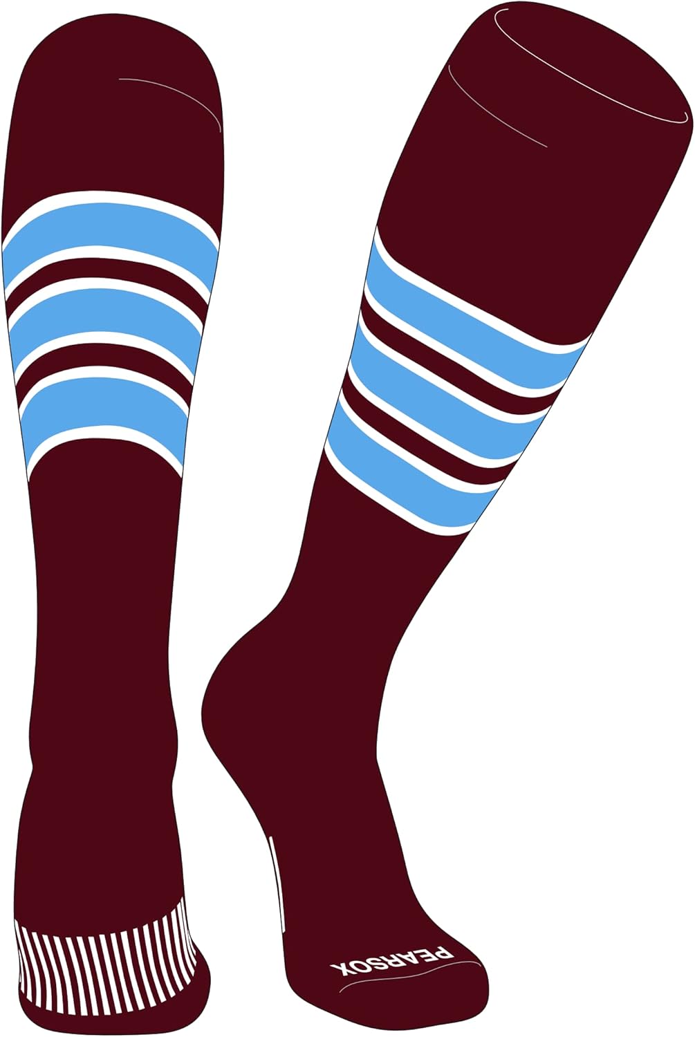 PEAR SOX Striped OTC Baseball, Softball, Football Socks (C) Maroon, White, Sky Blue