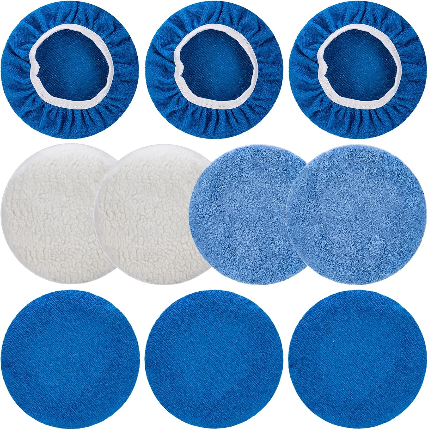 THINKWORK 10 Pcs Car Polishing Pad - 10 Inch Buffing Pad, Microfiber Wax Applicator Pad, Wool, Coral Fleece