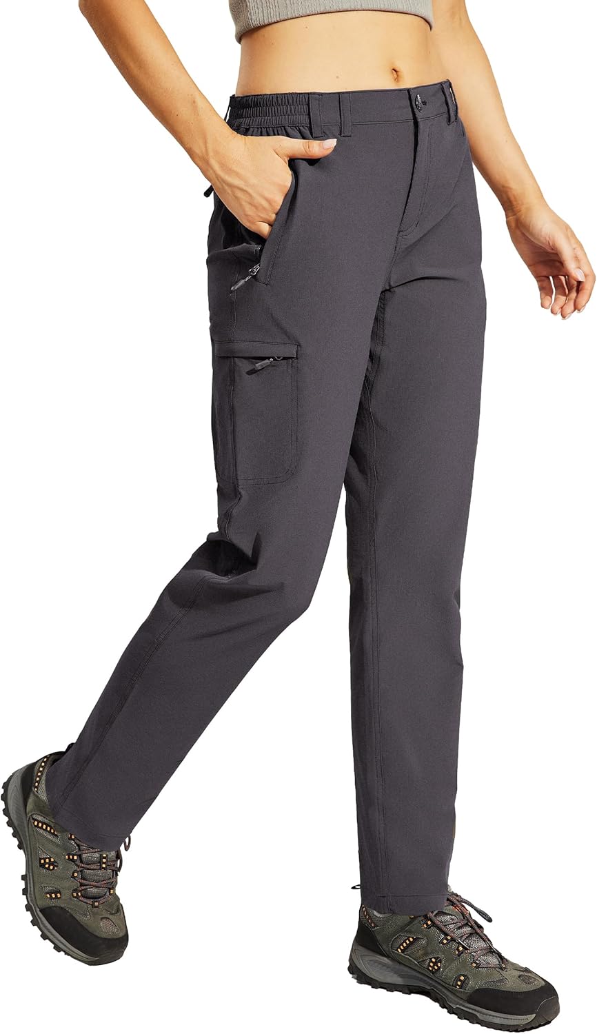 Haimont Women's Hiking Cargo Pants Quick Dry Lightweight Ripstop Stretch Nylon Travel Pants with Zip Pockets Water Repellent