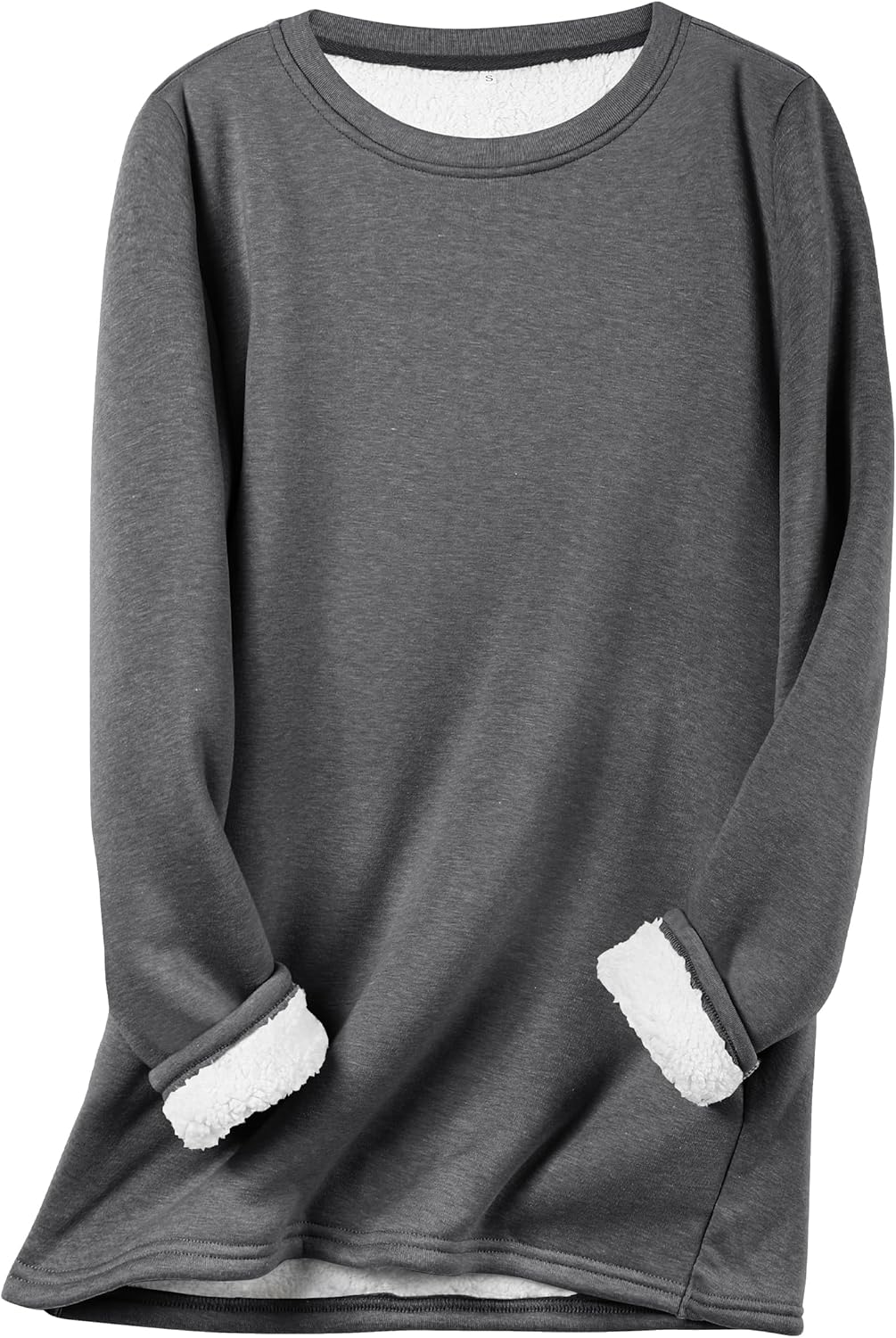 Flygo Women's Winter Warm Sherpa Lined Fleece Crewneck Sweatshirt Pullover Loungewear Tunic Tops