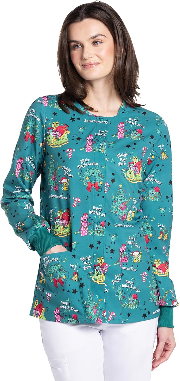 Cherokee Scrub Jackets For Woman Printed Snap Front Modern Classic Fit, 2 Pockets, Rib-Knit Cuffs - CK321