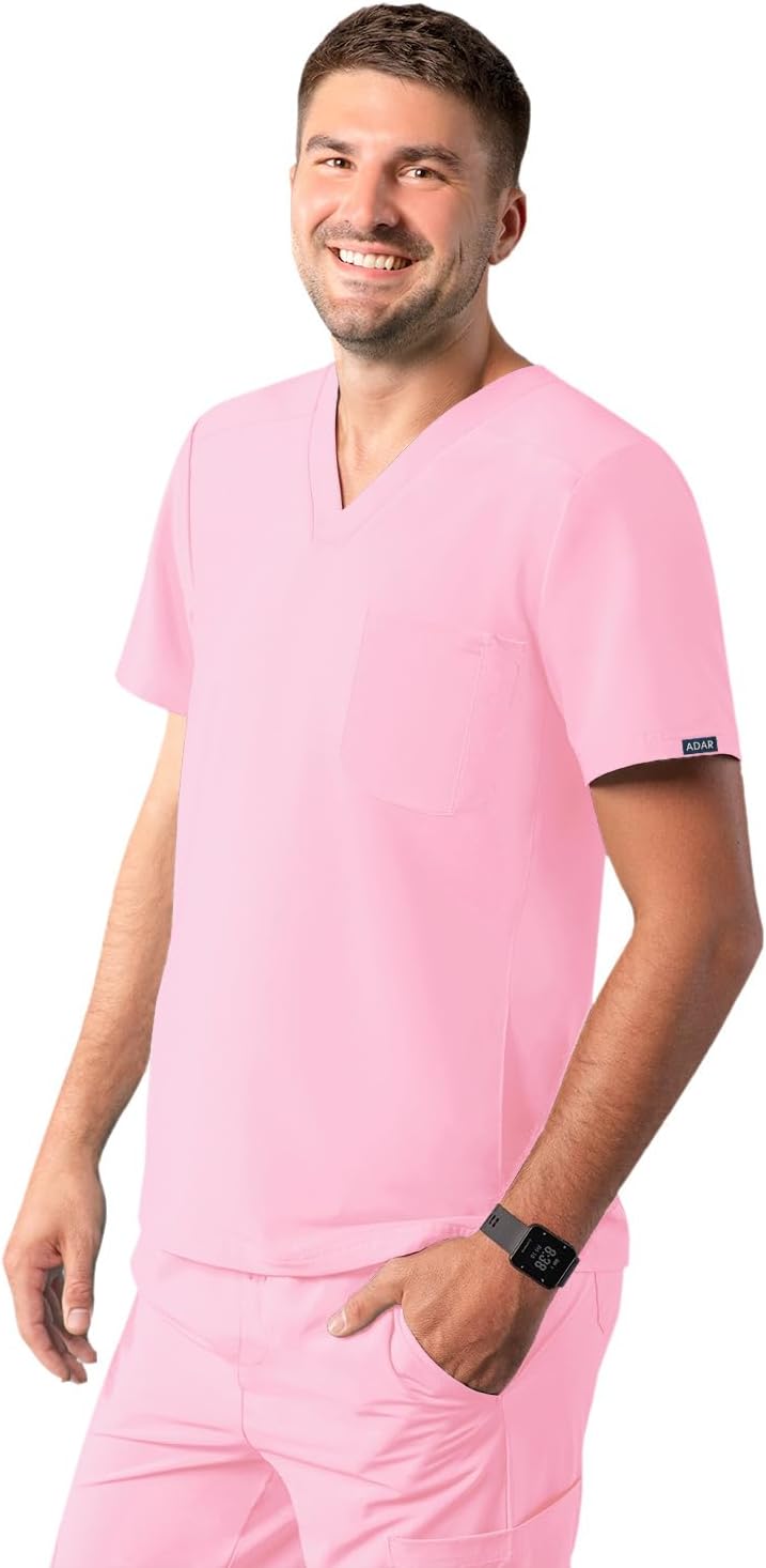 Adar Addition Scrubs for Men - Modern Multi Pocket V-Neck Scrub Top