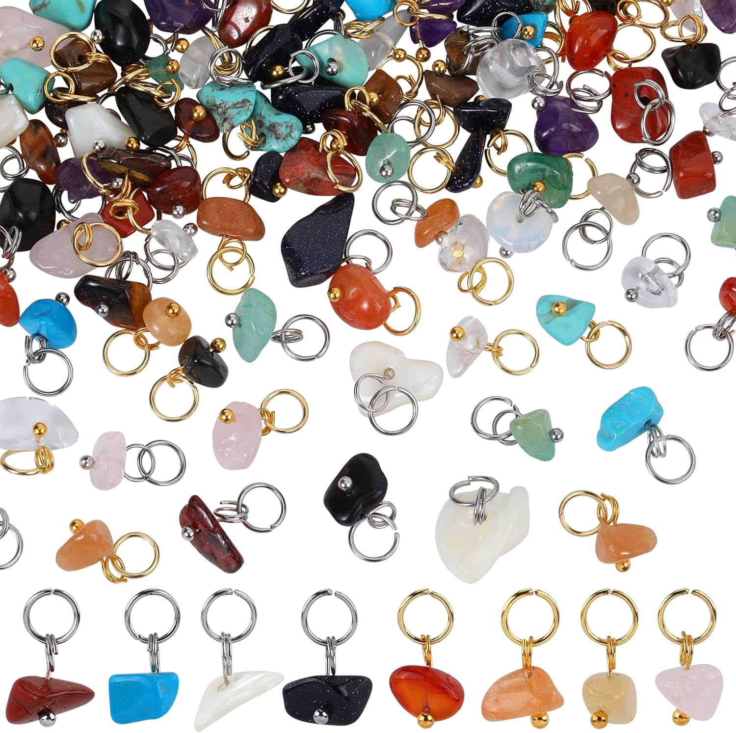 150Pcs 30 Styles Mixed Gemstone Nuggets Charms Stone Charms Crystal Pendants Bulk with 304 Stainless Steel Jump Ring for Necklace Earring Jewelry Making