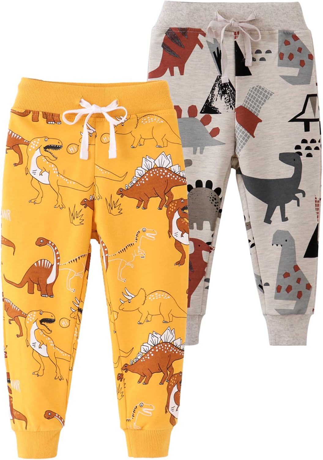 Toddler Baby Boy's Cartoon Print Dinosaur Car Animal Cotton Pants Drawstring Elastic Sweatpant(2-Pack 3-Pack)