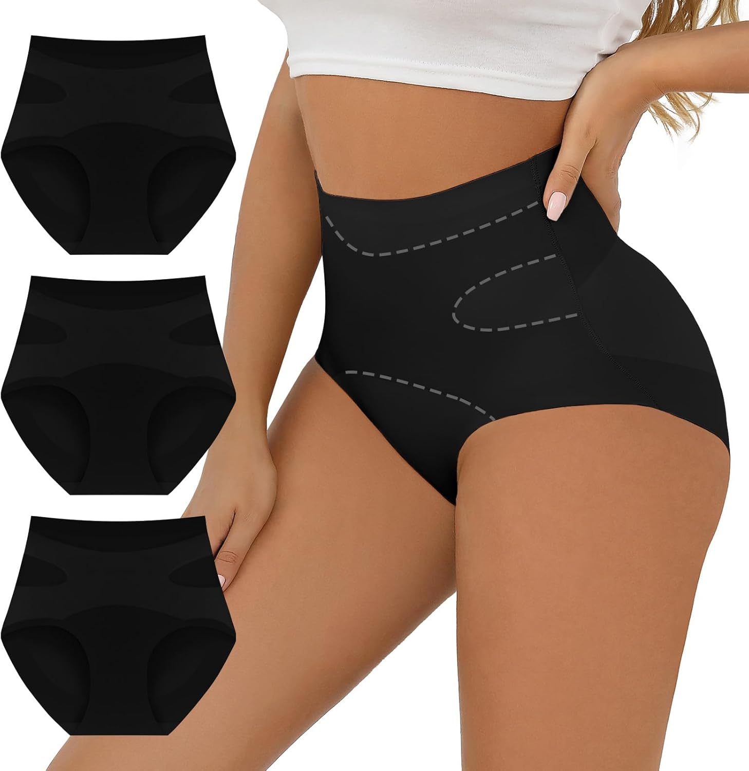 FallSweet No Show Tummy Control Underwear for Women High Waisted Panties Comfy Briefs Pack