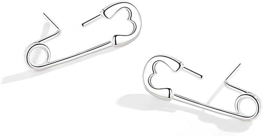 SLUYNZ 925 Sterling Silver Safety Pin Stud Earrings for Women Teens Paper Clip Earrings Punk Earrings Cute Stud Earrings