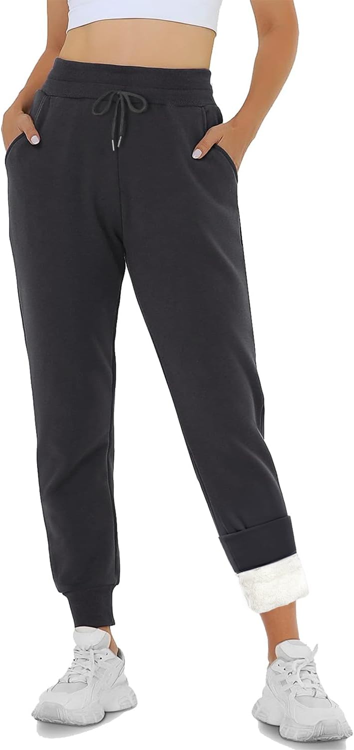 MAYSTEPPE Women's Fleece Lined Sweatpants, Sherpa Lined Winter Joggers with Pockets, Warm Thermal Lounge Pants