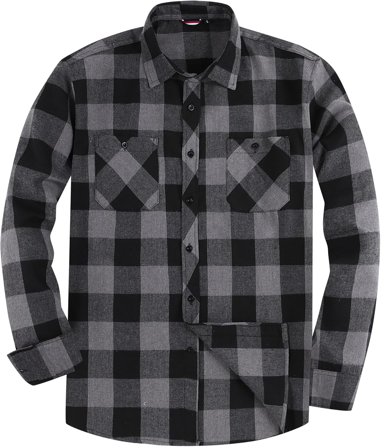 JupiterSecret Mens Flannel Plaid Shirts Long Sleeve Button Down Casual Shirt Regular Fit with Pockets