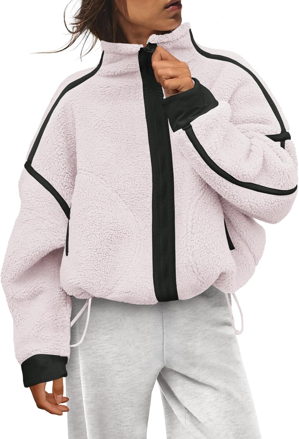 Panadila Womens Fleece Zip Up Jacket Fuzzy Sherpa Jacket Casual Teddy Coats Winter Outerwear with Pockets