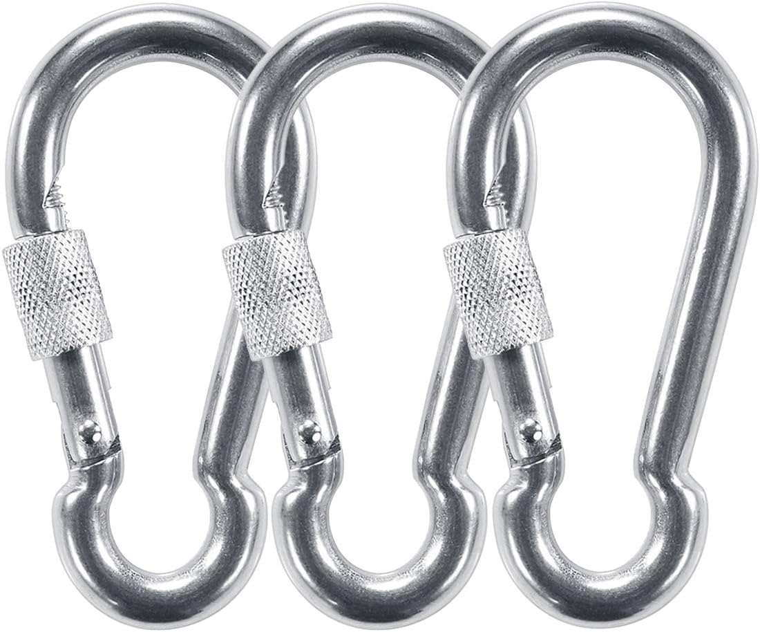- ✔ MULTIPURPOSE -- Size 3.54 x 1.58 x 0.35inch (L x W x D). 316 stainless steel screw lock carabiner hooks suitable for outdoor work, hangs a hammock, hanging swing etc. Package included: 3 x carabiner hook.