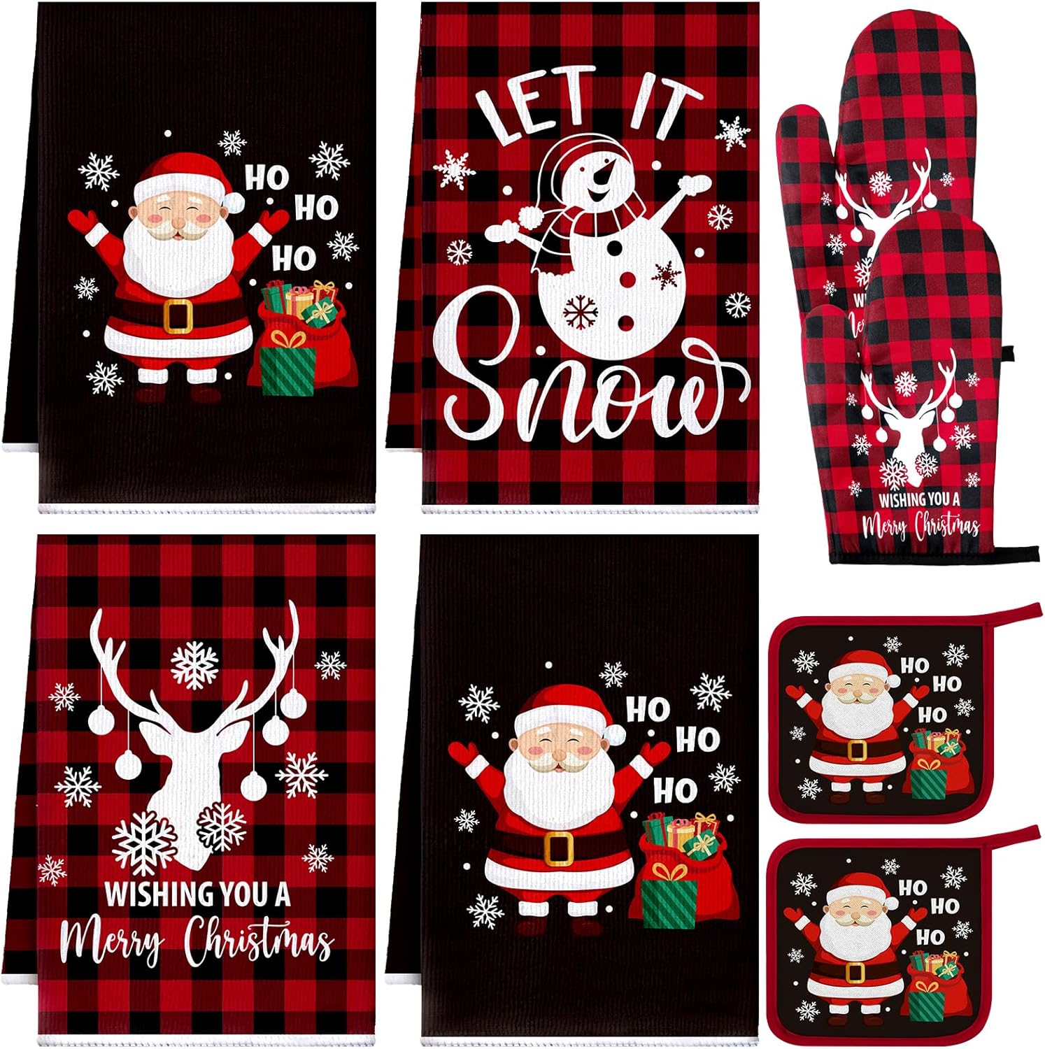 - Comprehensive Kitchen Set: Christmas buffalo plaid kitchen accessories package includes 4 kitchen dish towels, 2 pot holders, and 2 oven mitts, providing everything you may need for a convenient, efficient, and safe kitchen experience; This complete set ensures you won't have to purchase each item separately, saving you time and energy