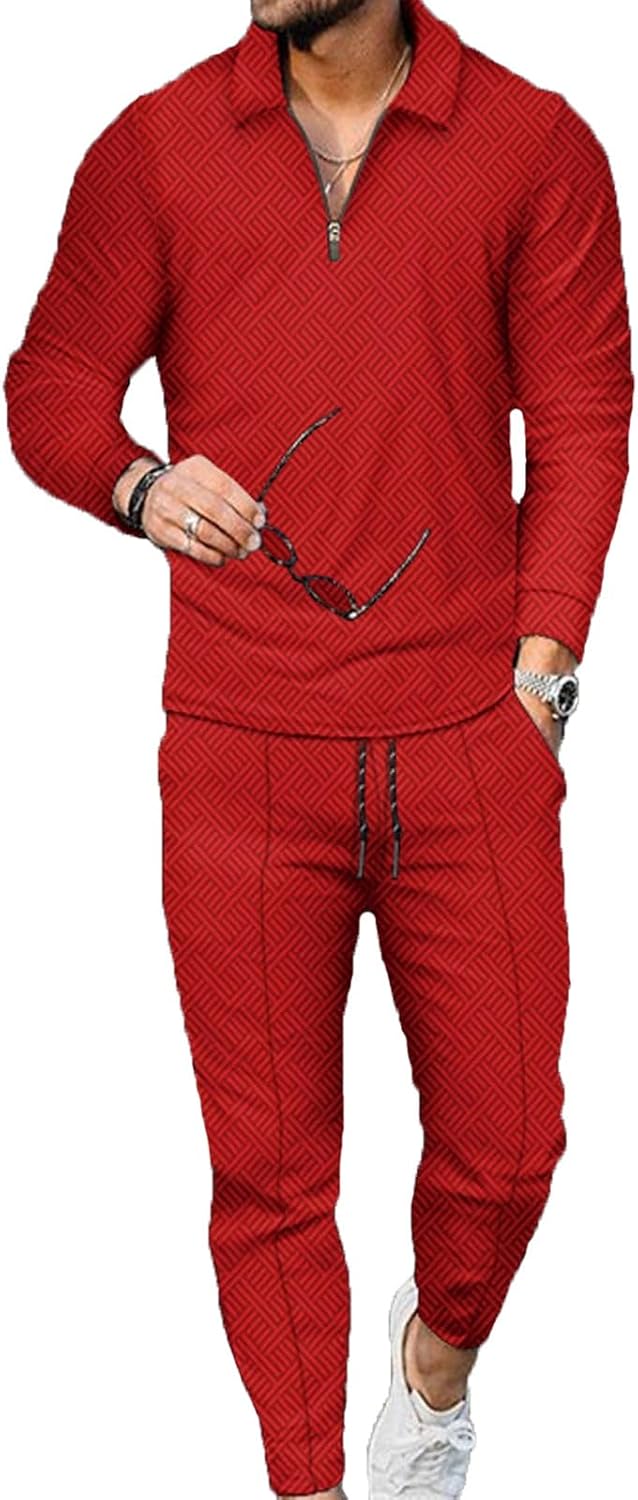 Mens Tracksuit Set 2 Piece Long Sleeve Polo Shirt and Pants Jogging Sweatsuits Sets Casual Fashion Vacation Outfits Loungewear Red Size S