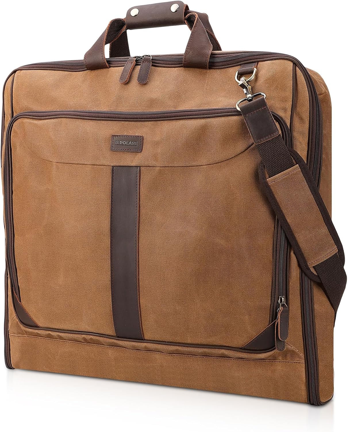 Polare Waxed Canvas Full Grain Leather Trim Garment Carry on Bag for Business Travel, Waterproof Hanging Suit Luggage Bag Wrinkle-Free Suit Cover with YKK Zipper and Shoulder Strap