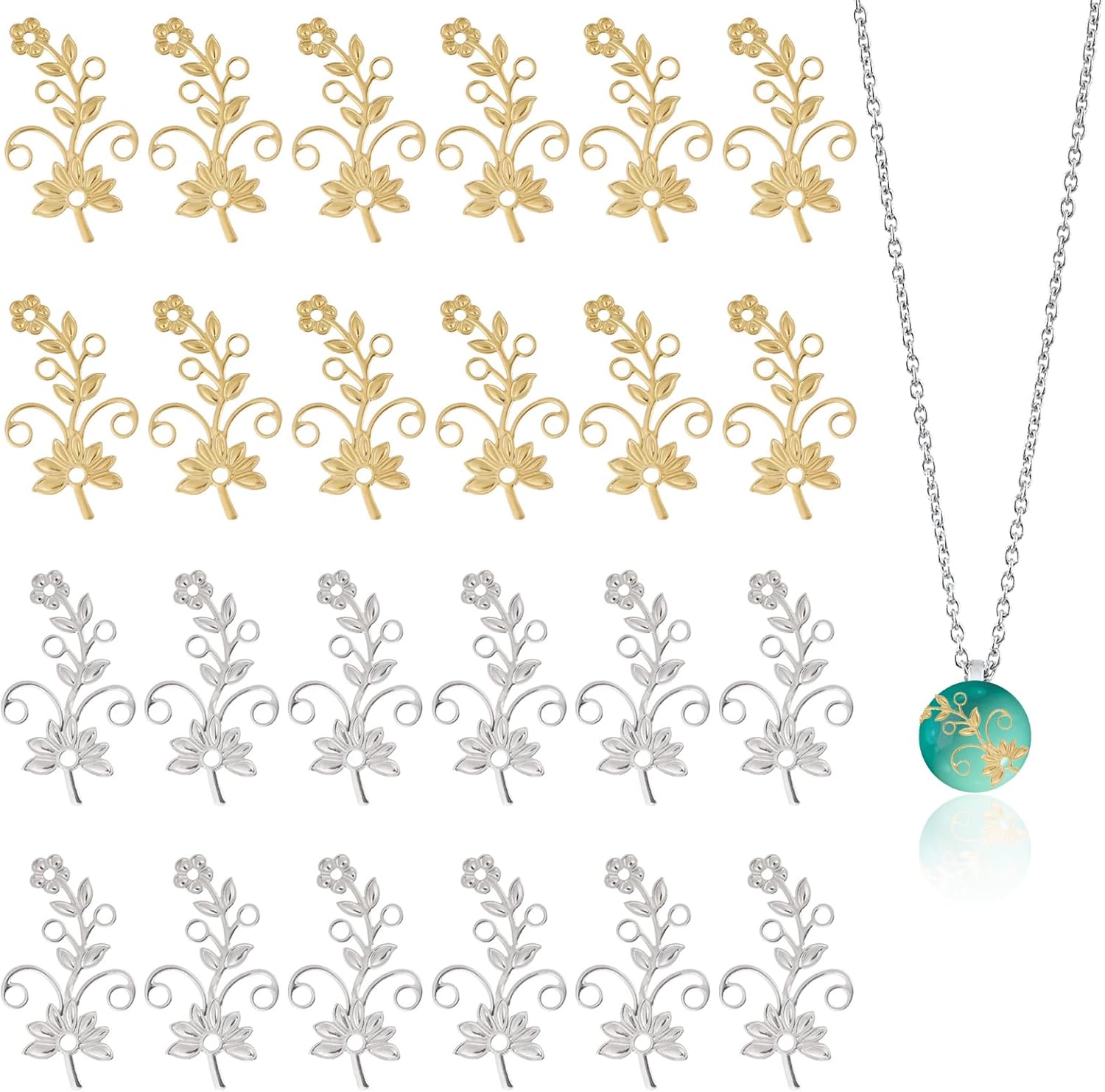 CHGCRAFT 24 pcs 2 Colors Branch Leaf Base Pendant Setting Brass Twig Blank Base Leaves Branch Pendants for DIY Necklace Jewelry Earrings Crafts Supplies, 2 Colors, 1.53x0.87x 0.02inch