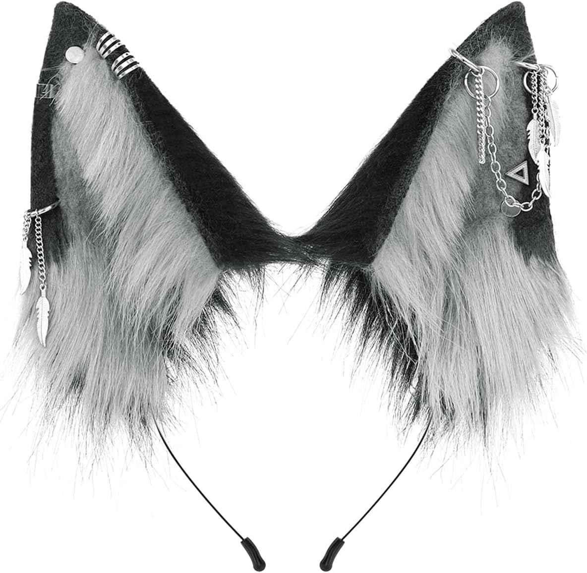 QinRuan Cat Ear HairBand Faux Fur Animal Ears Metal Chain Punk Dark Cosplay Custume Gothic Style Headwear