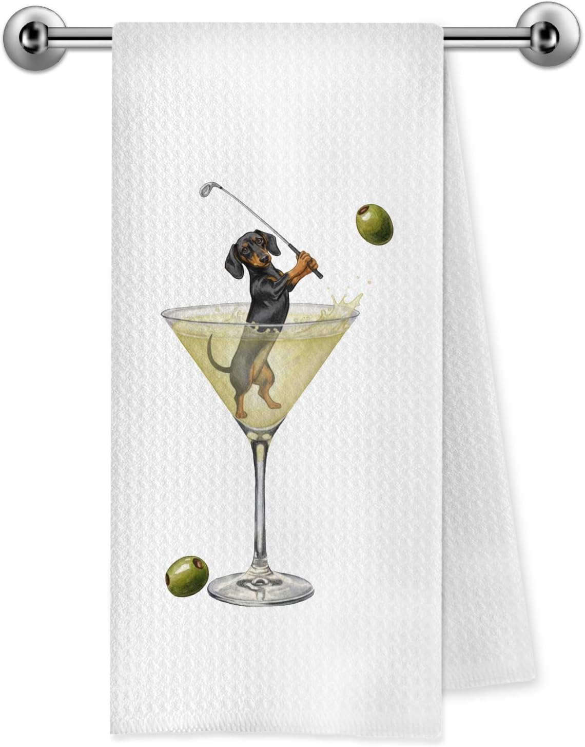 Funny Dachshund Golf Martini Kitchen Towels, Gifts for Martini Lovers, Dachshund Gifts for Women Men, Weiner Dog Cocktail Decorative Dish Tea Hand Towels for Kitchen, 16x24 Inch