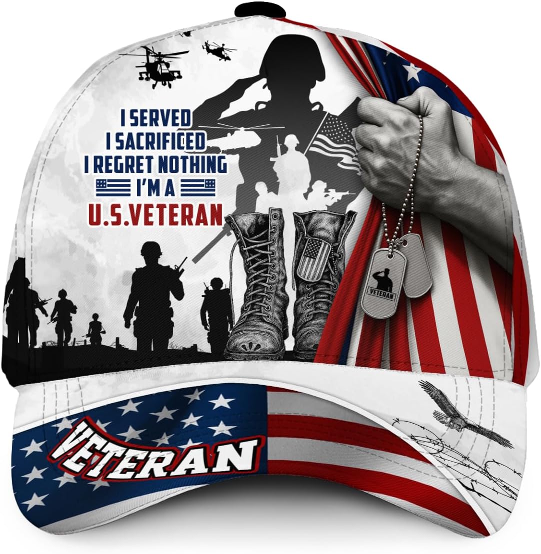 Custom US Veteran Hat for Men – Patriotic American Flag Baseball Cap with Name, Military Inspired Gift for Veterans