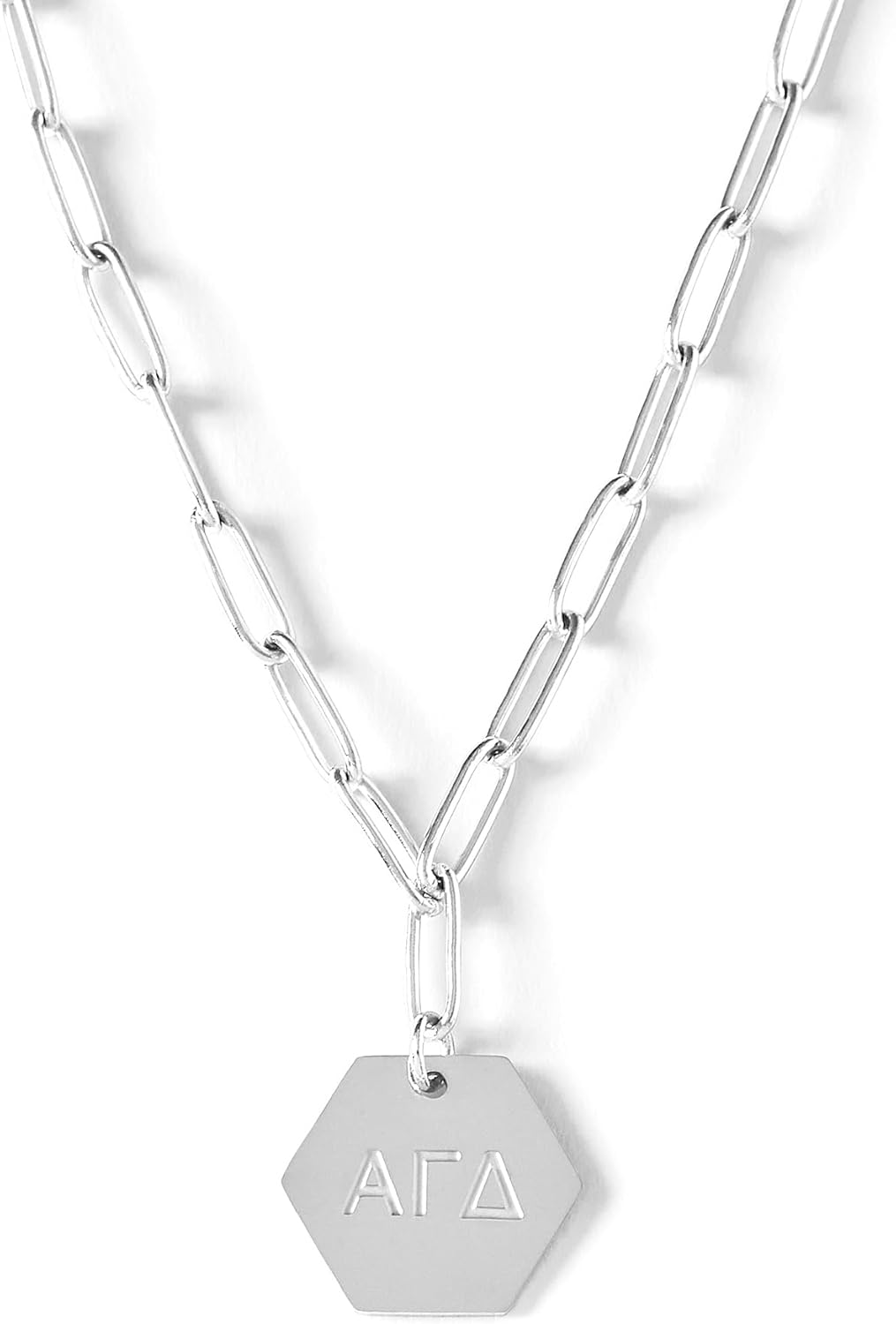 Sorority Shop Alpha Gamma Delta Necklace- Silver Plated Paperclip Necklace, Long-Lasting Alpha Gamma Delta Gifts for Women