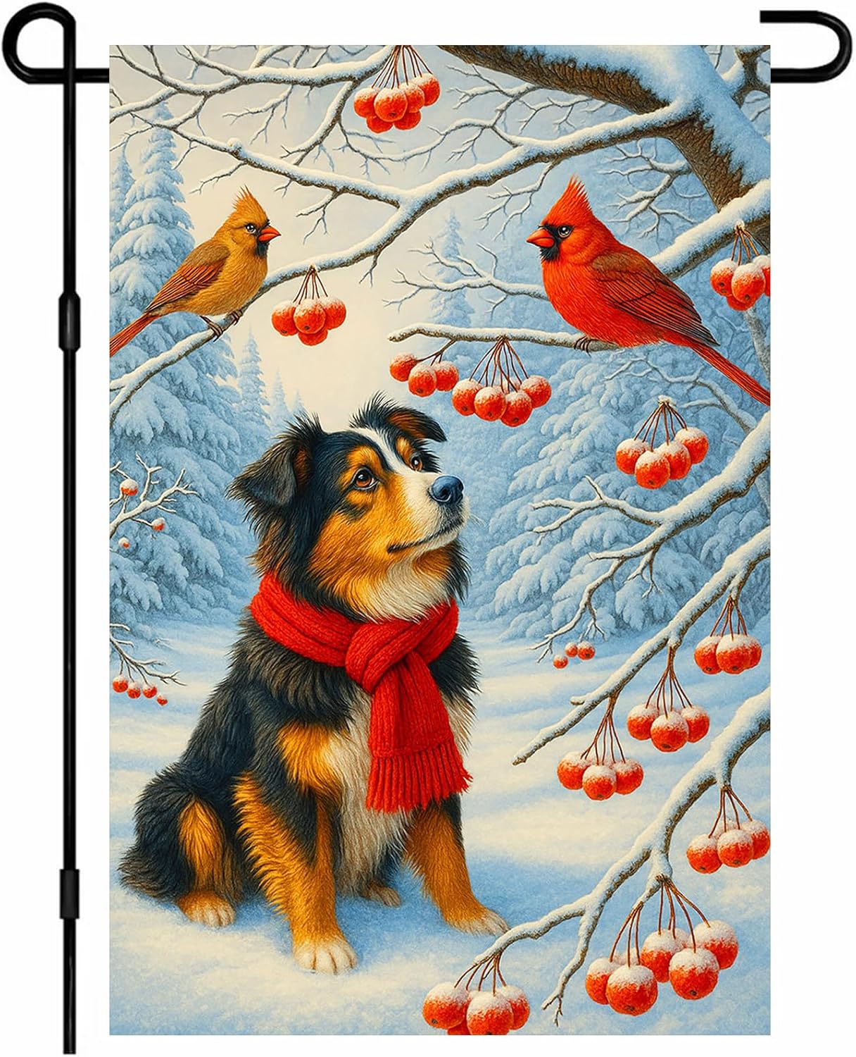 IVN Winter Garden Flag 12x18 Inch Double Sided Australian Shepherd Dog and Christmas Winter Birds Outdoor Yard Flag for Outside Home Front Door Lawn Porch Patio Welcome Decor
