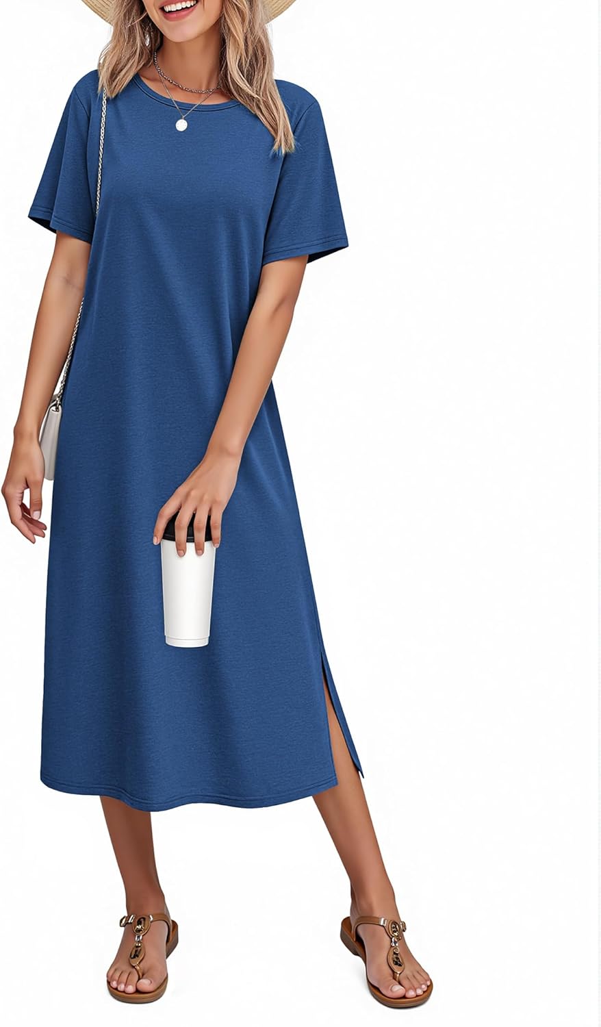 Ekouaer Cotton Nightgown for Women Long Sleepshirts Short Sleeve Full Length Nightshirt Casual Loungewear