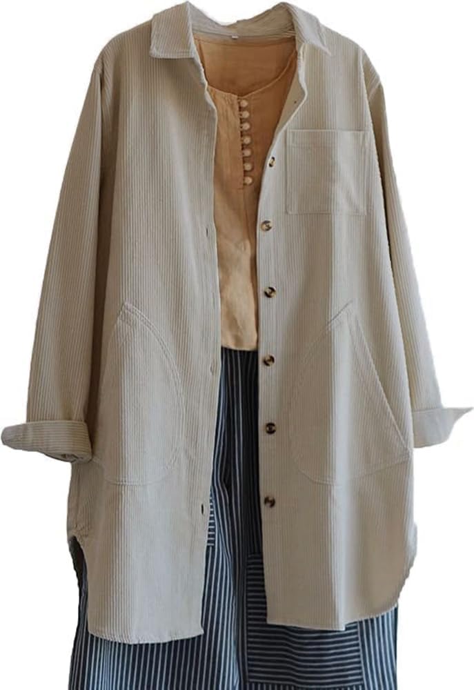 Minibee Women's Corduroy Shirt Coats Long Sleeve Button Down Blouses Tops with Pockets