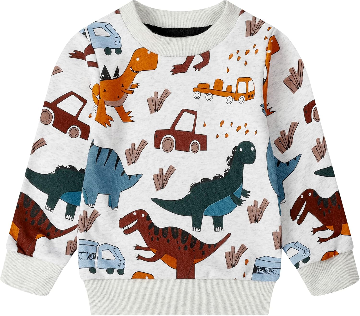 Akyzic Boy Dinosaur Sweatshirts Toddler Long Sleeve Cotton Space Pullover Cartoon T-Shirts Sport Top Tee For Kids 2-7T