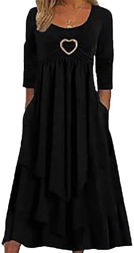 Bengbobar Womens Fall Crewneck Long Sleeve Dress Casual Cute Heart Tiered Swing Ruffle A Line Flowy Maxi Dresses with Pockets