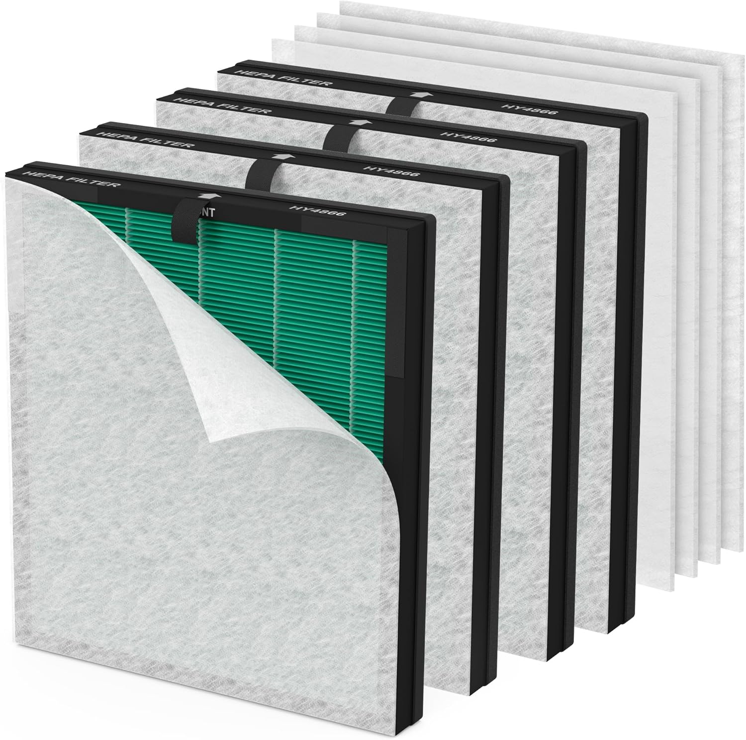 - 【3-IN-1 FILTRATION SYSTEM】 The HY4866 filter replacement features a three-layer filtration system: the first layer is a coarse electrostatic cotton pre-filter that captures hair, dander, large particles. The second layer is a premium filter, which effectively absorb most of particles from your home, keeping your air clean and fresh. The third layer uses honeycomb activated carbon particles to absorb odors like smoke.