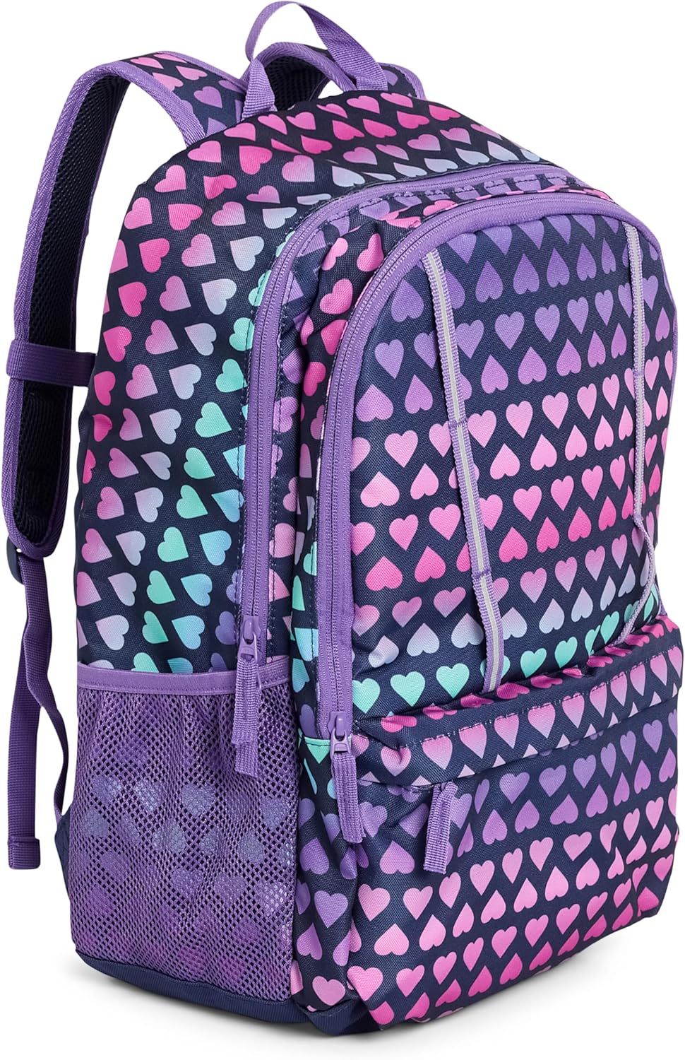 - FUNCTIONAL EXTERIOR & COMFORTABLE FIT: For a secure and comfortable fit, the backpack has adjustable shoulder straps with PE foam padding and an adjustable chest strap with buckle closure. A reinforced top handle doubles as a convenient hand grip and wall hanger. High-quality zippers provide easy access to the two-way zippered main compartment, a secondary compartment, and a front pocket, while two mesh side pockets are perfect for water bottles.