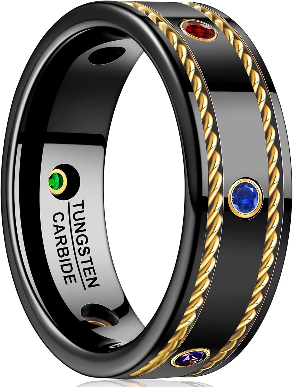 NUNCAD 8mm Tungsten Ring for Men, Black and 14K Gold Twisted Cable Mens Wedding Band with Color Cubic Zirconia Inlay Comfort Fit, Size 7-12