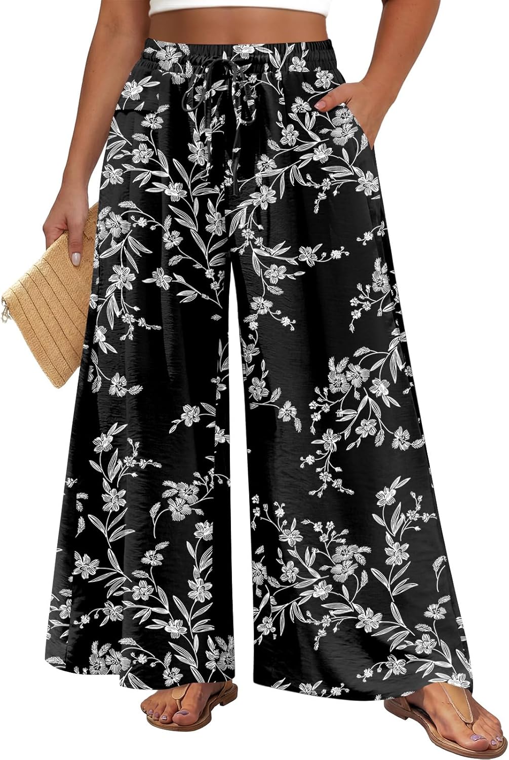Aodemo Women's Plus Size Palazzo Pants Dressy Wide Leg Pants High Waist Casual Beach Flowy Culottes with Pockets