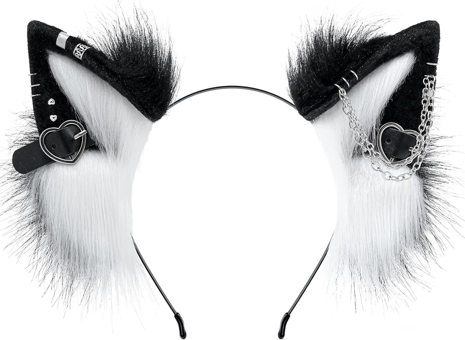 Handmade Faux Fur Cat Ear Headband with Charms Adult Cosplay Accessory for Halloween
